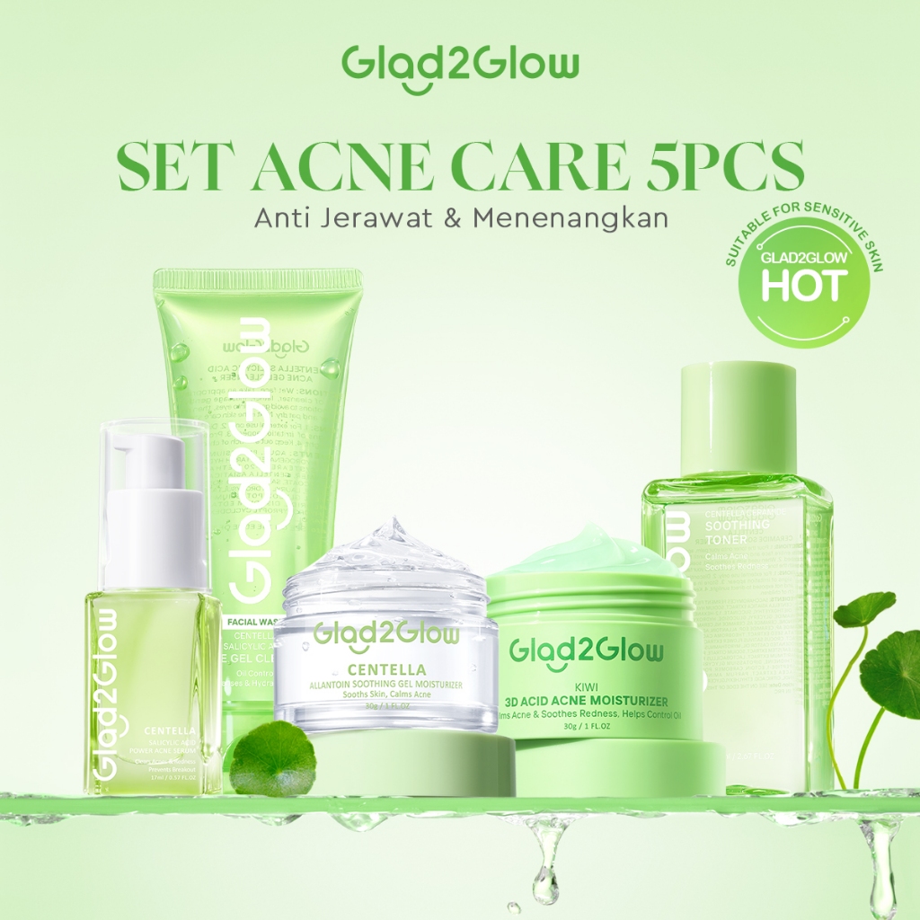100 PERSEN ORIGlad2Glow Acne Care bundle all in 1 - 2/3/4/5/6 PCS Skincare Paket-Soothing toner+Centella Moisturizer+Blueberry Cleanser+Centella Serum Bahan