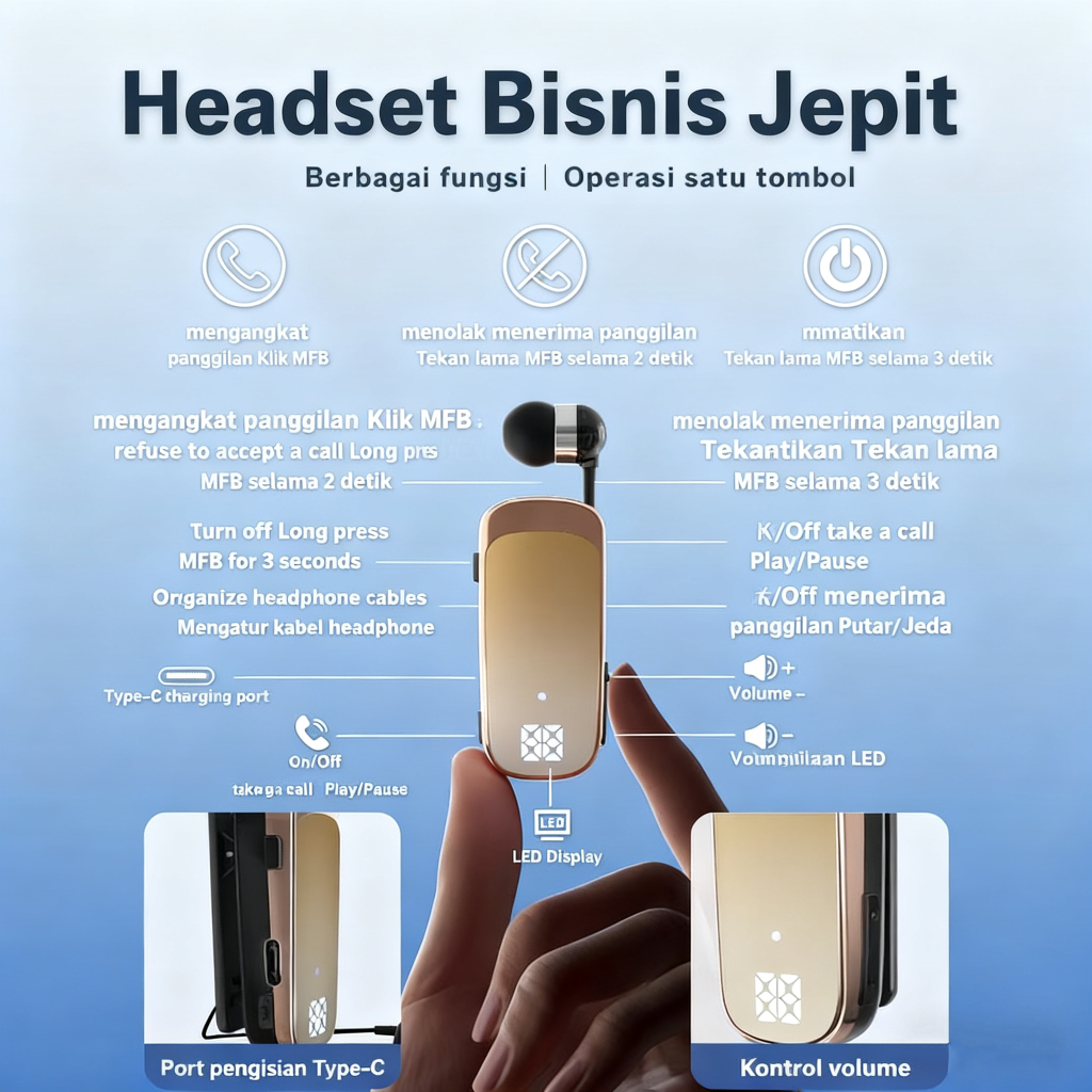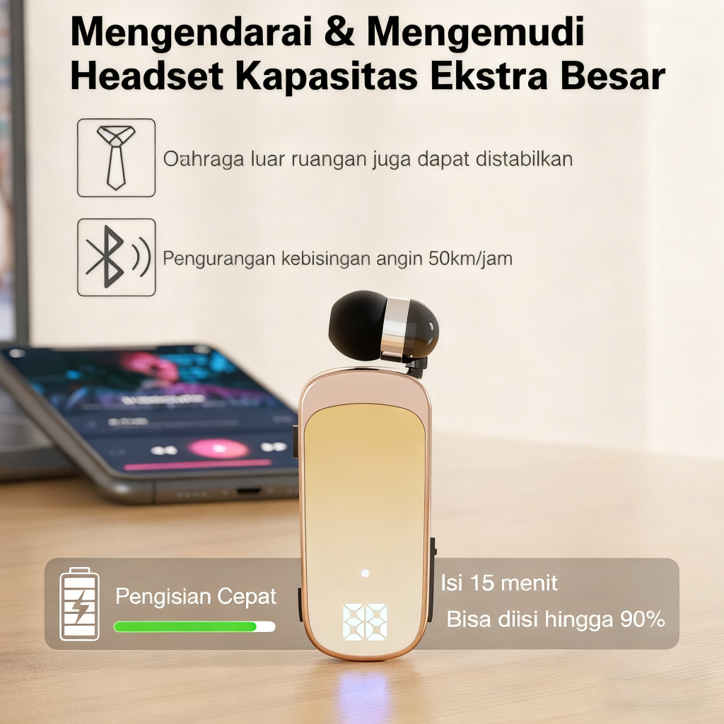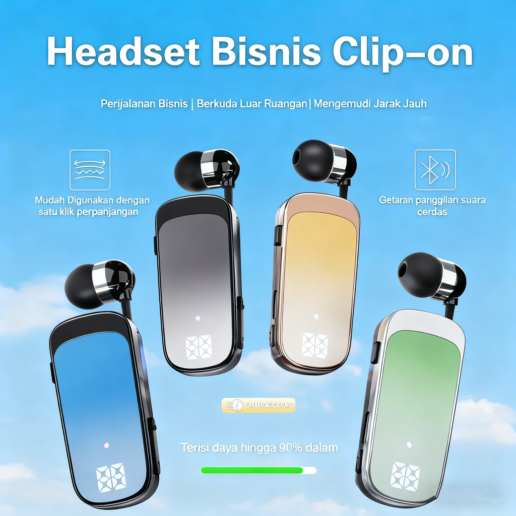 Headset Bluetooth Earphone Lavalier Dapat Ditarik Wireless Bluetooth V5.2