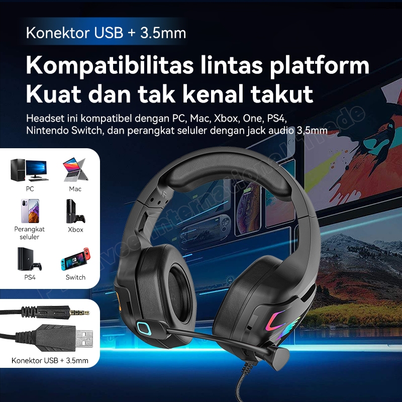 ASTON Headphone Gaming Profesional ATMT126 With Mikrofon 4 Mode RGB USB+3.5MM Jack Black Original
