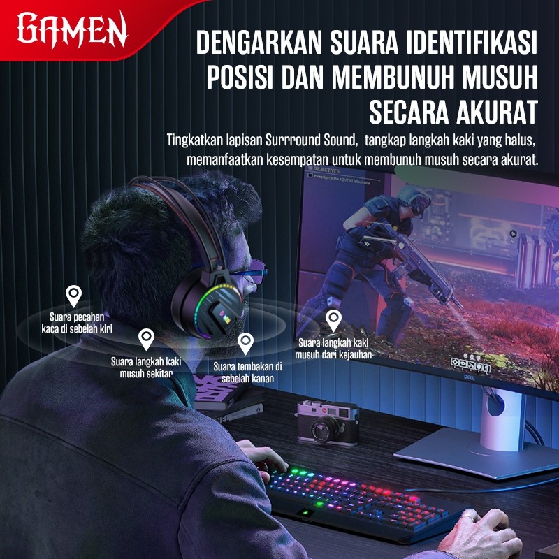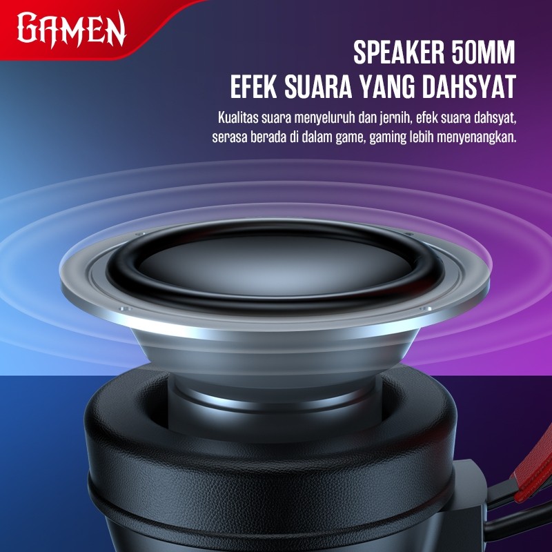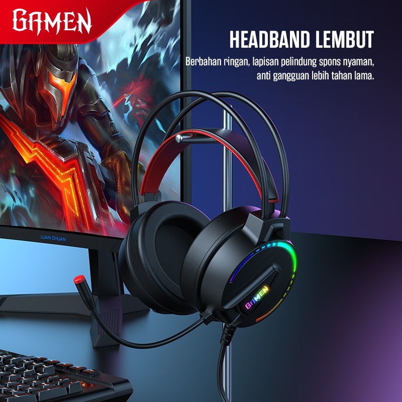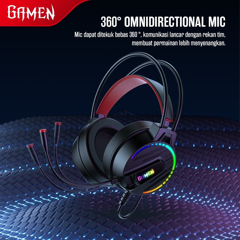 GAMEN Headset Gaming 50mm Driver 3D Surround Sound GH200 USBAUX 3.5mm Soft Headband 360 Derajat Microphone For PC