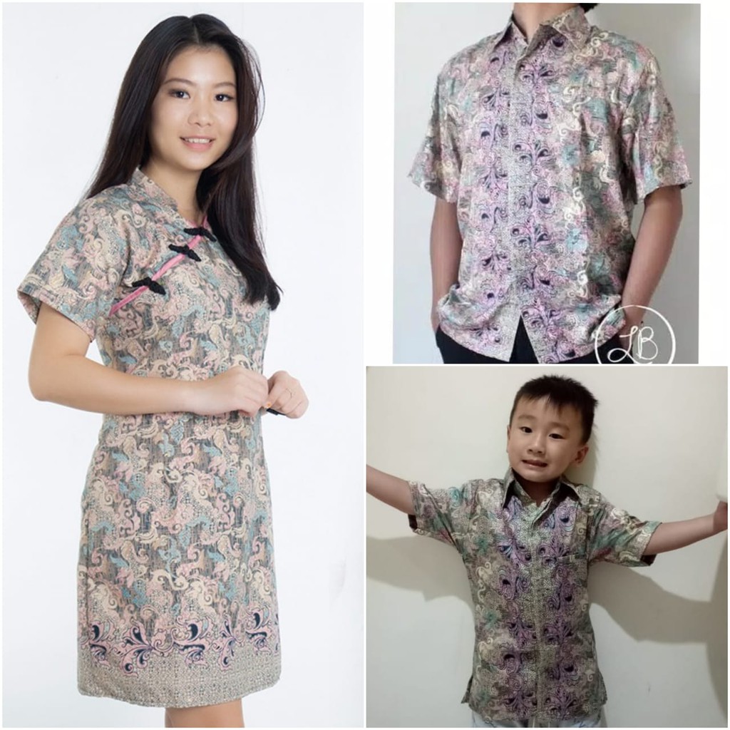 Couple Family Yulisna Dress Midi Cheongsam Imlek Natal Kombi Kemeja Pendek Batik Ayah Anak