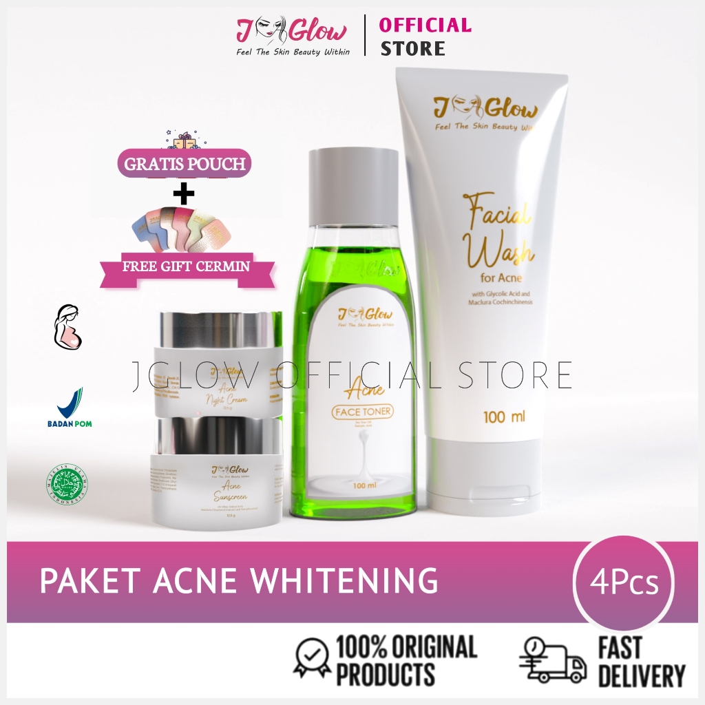 JGLOW Paket Acne Whitening 4in1 – Skincare Jerawat Ringan, Bruntusan & Kulit Berminyak BPOM