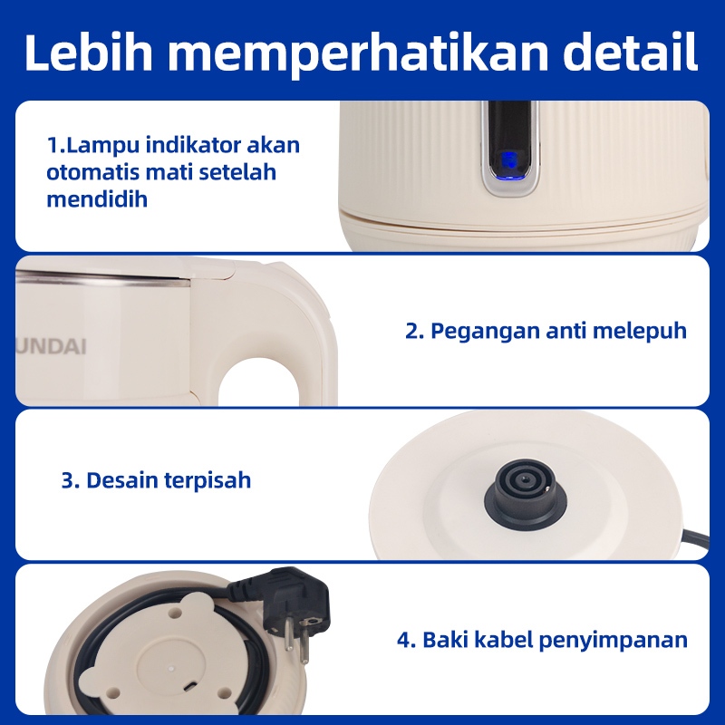 Teko Listrik Hyundai Pemanas Air 2L 304 Bahan Food Grade