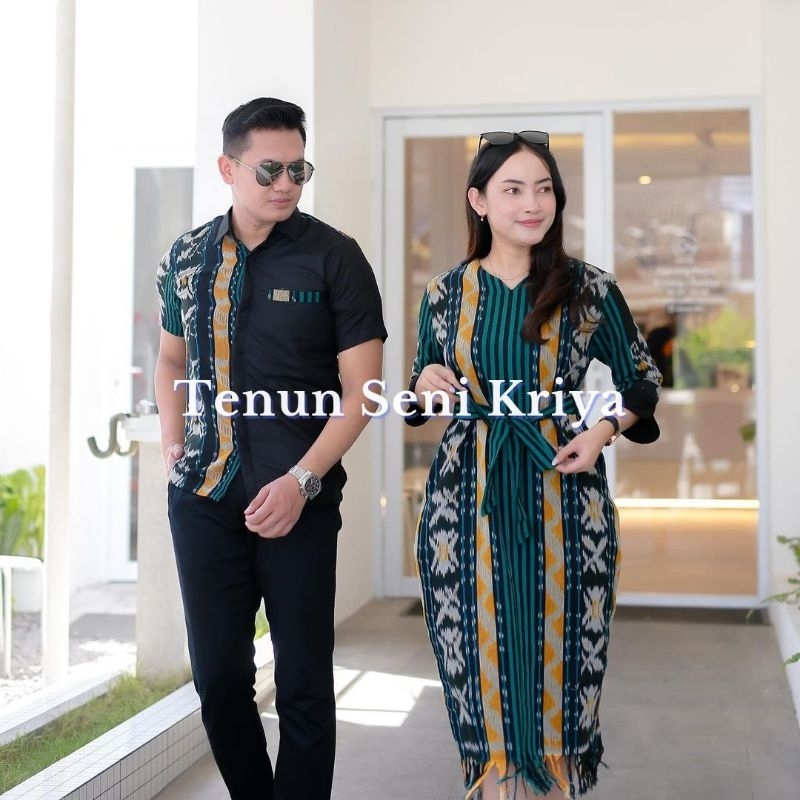 Ready Stok Set Baju Couple Tenun Kondangan - Baju Set Couple Prewedding - Baju Tenun Couple Keluarga - Baju Natal - Baju