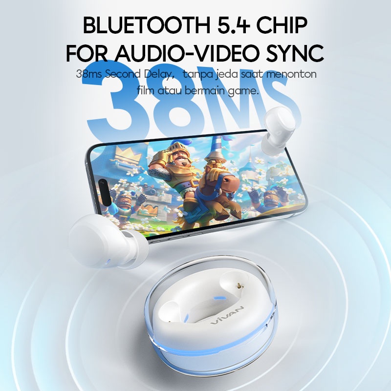 VIVAN TWS Bass Up InEar Bluetooth 5.4 Low Latency 38MS Gaming Space Mini Garansi 12 Bulan
