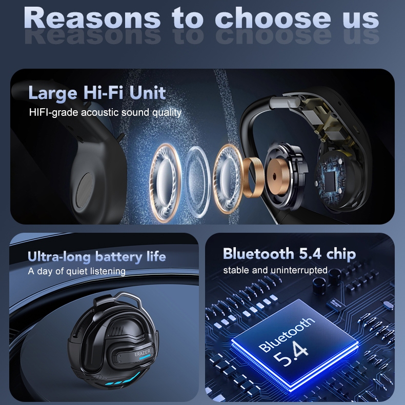 Lenovo ERAZER X8 Earphone Bluetooth 5.4 OWS dengan Mikrofon Headphone Olahraga Headphone Gaming Stereo Bass HiFi