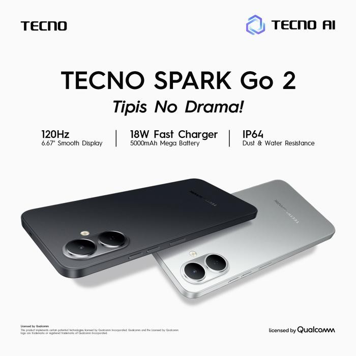 [NEW] TECNO SPARK Go 2 - 3+3GB/64GB, IP64, 6.67" HD+, 120Hz Smooth Display, 5000mAh, 18W Charging, Free Communication, Android 15-Go, sparkgo2