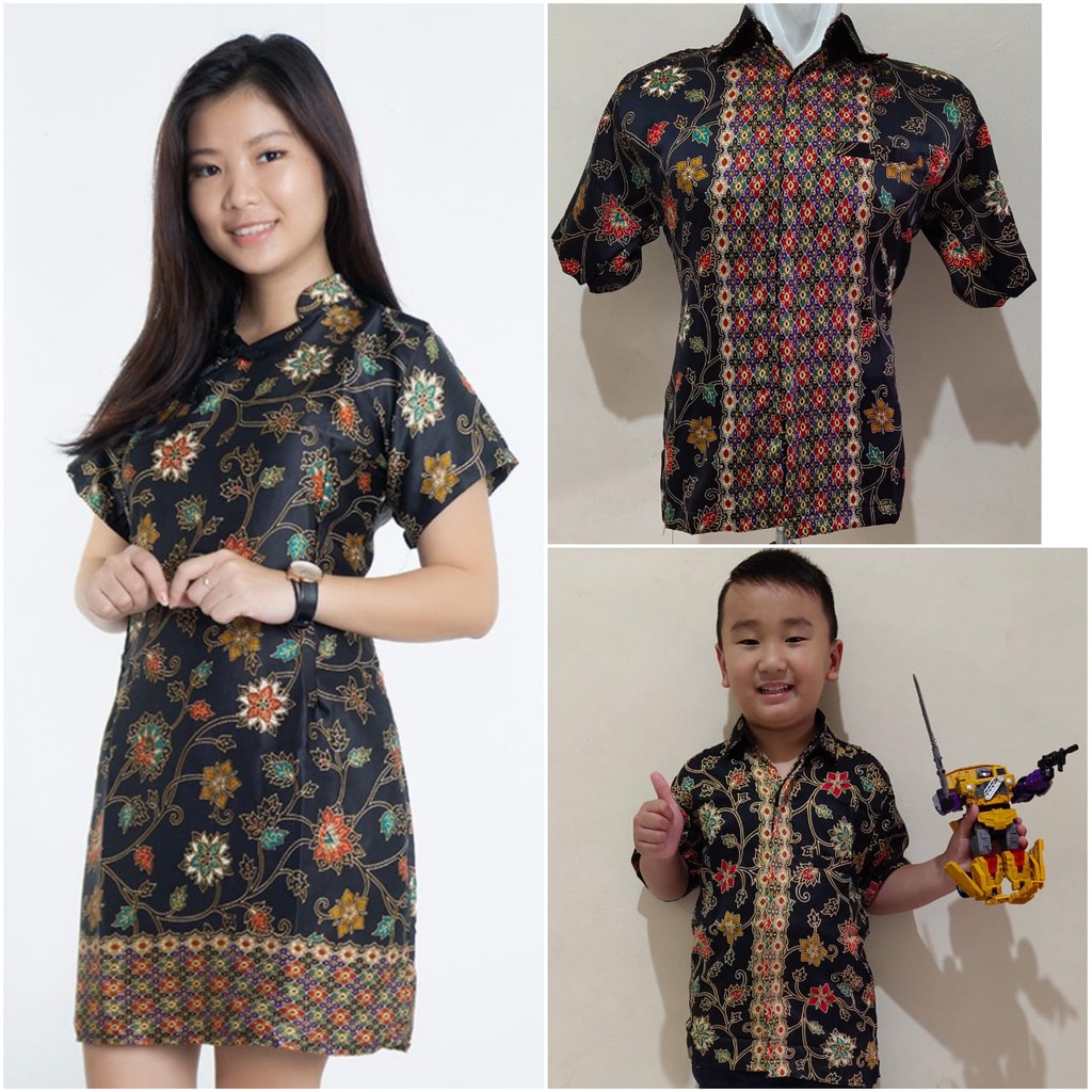 Couple Family Unisa Dress Midi Cheongsam Imlek Natal Kombi Kemeja Pendek Batik Ayah Anak