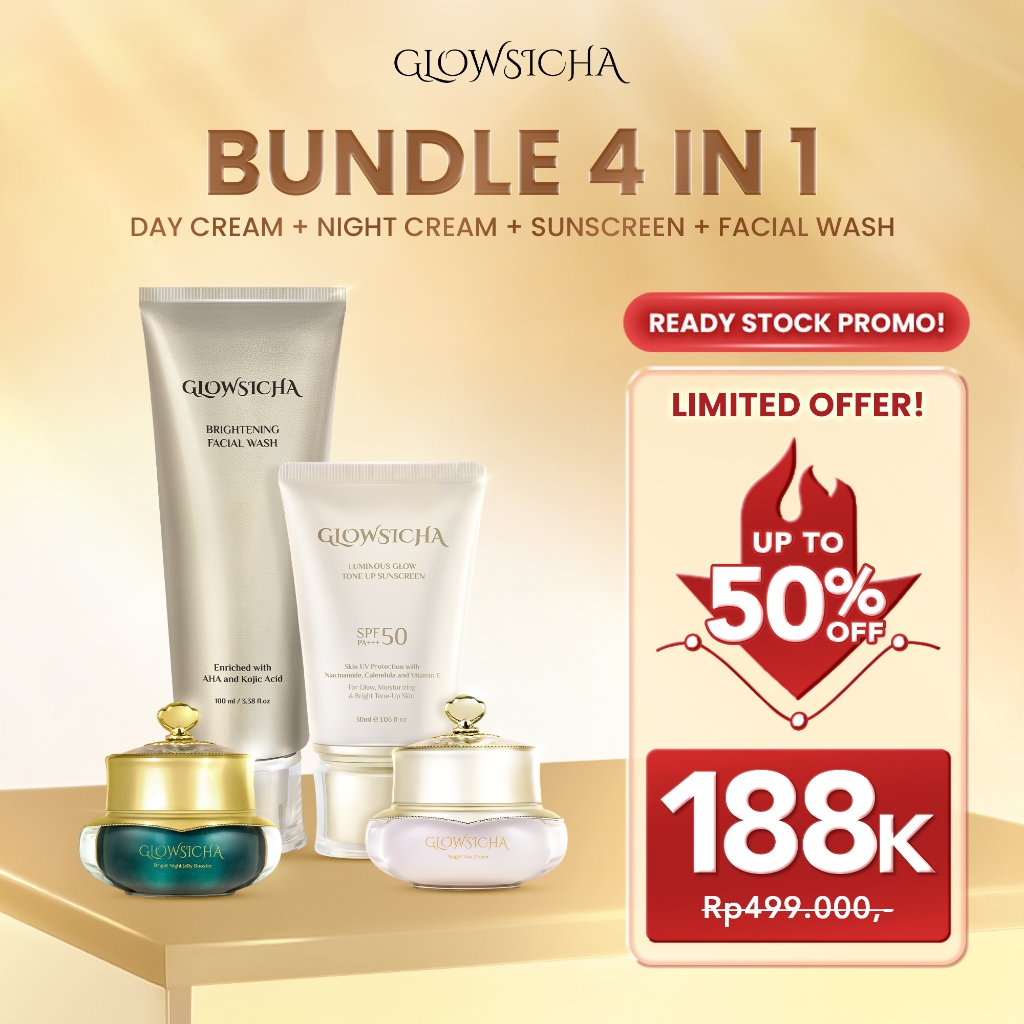 READY STOCK Glowsicha Bundle 4in1 Facial Wash + Night Jelly Booster + Day Cream + Sunscreen
