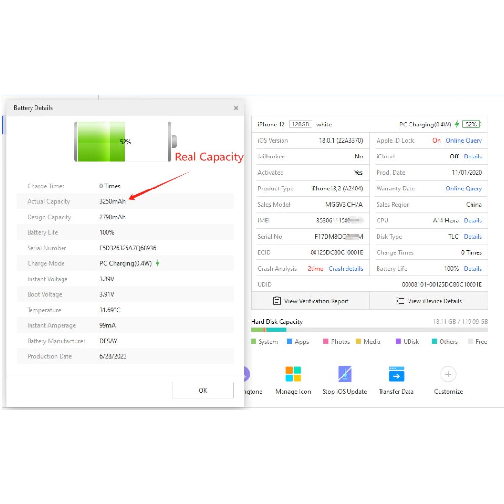 Baterai Kapasitas For iPhone 5 6 7 8 Plus SE X Xr Xs Max 11 12 13 14 15 pro max mini (free tools)-