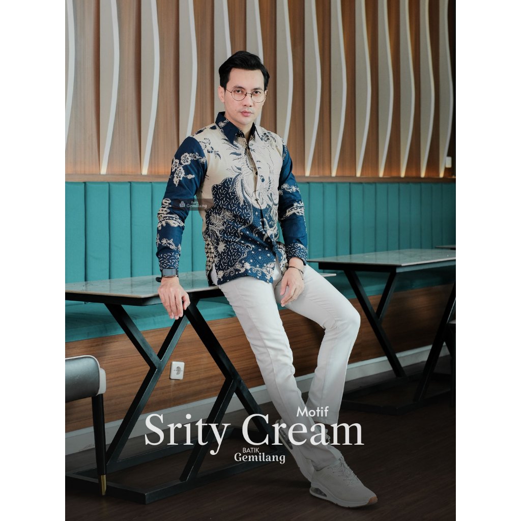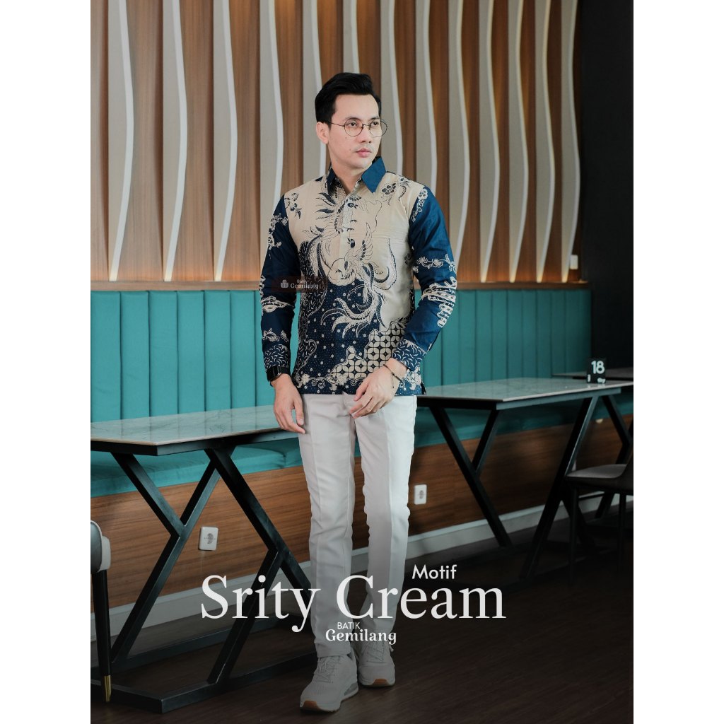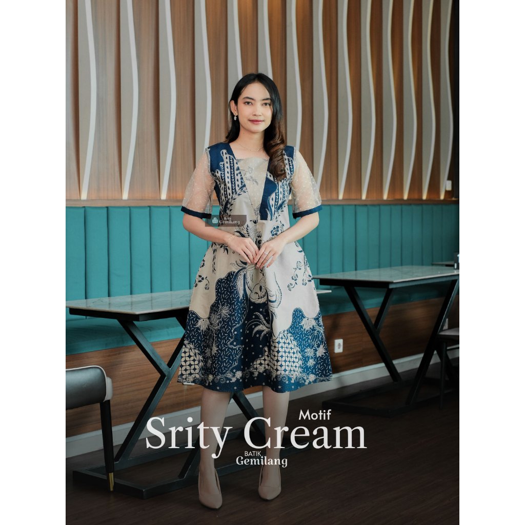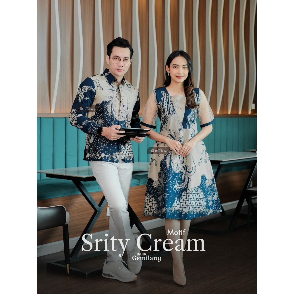 Motif Srity Cream - Batik Couple Elegan Wanita Pesta Kemeja Dress Premium Pria Kekinian | Couple Natal Elegan | Couple L