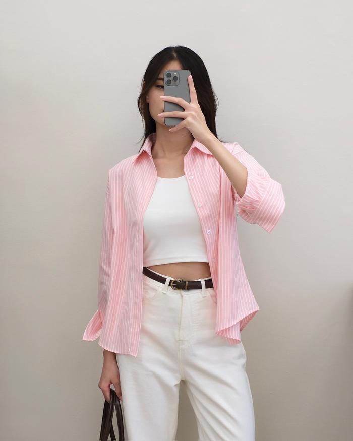 Kemeja Panjang Salur Wanita | Hanni Striped Shirt | HULM