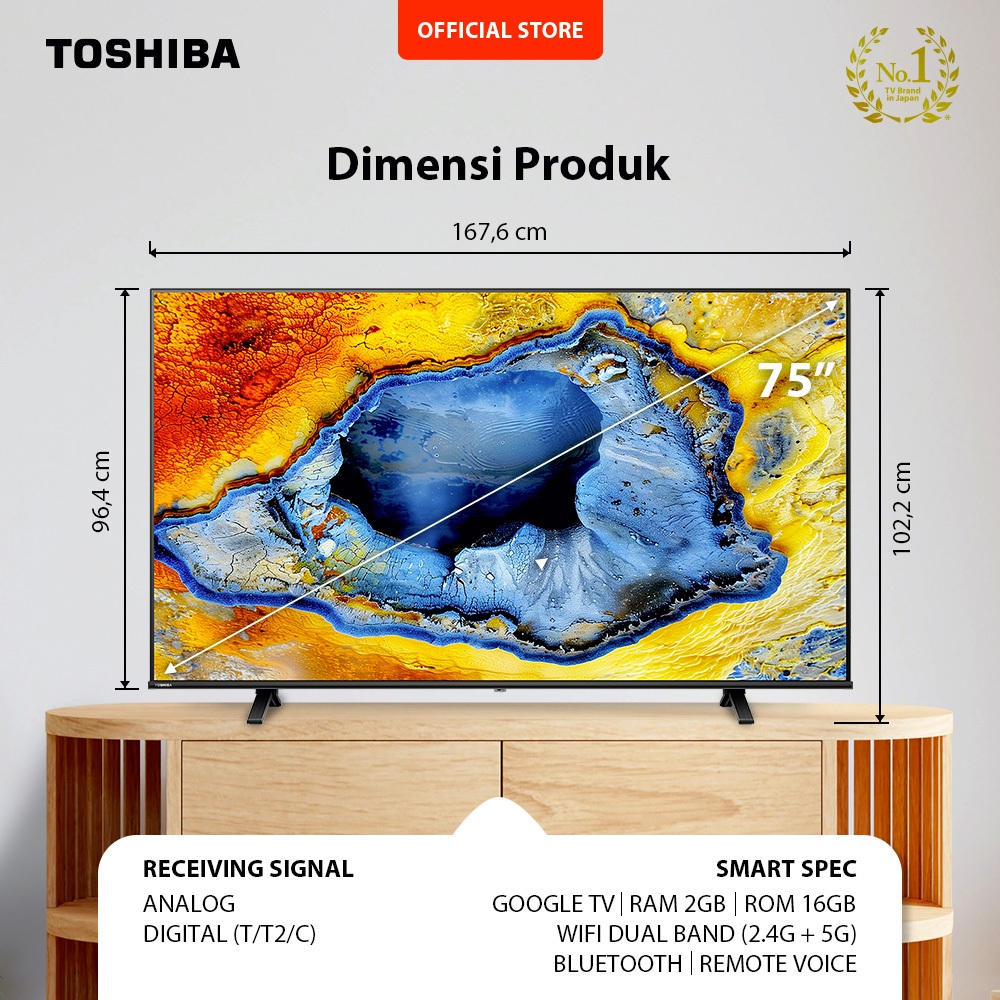 GOOGLE TV TOSHIBA 75 65 55 40 INCH FHD WIFI BLUETOOTH HDMI USB DIGITAL DVBTT2 SIGNAL BOOSTER SPORT TELEVISI BESAR MURAH