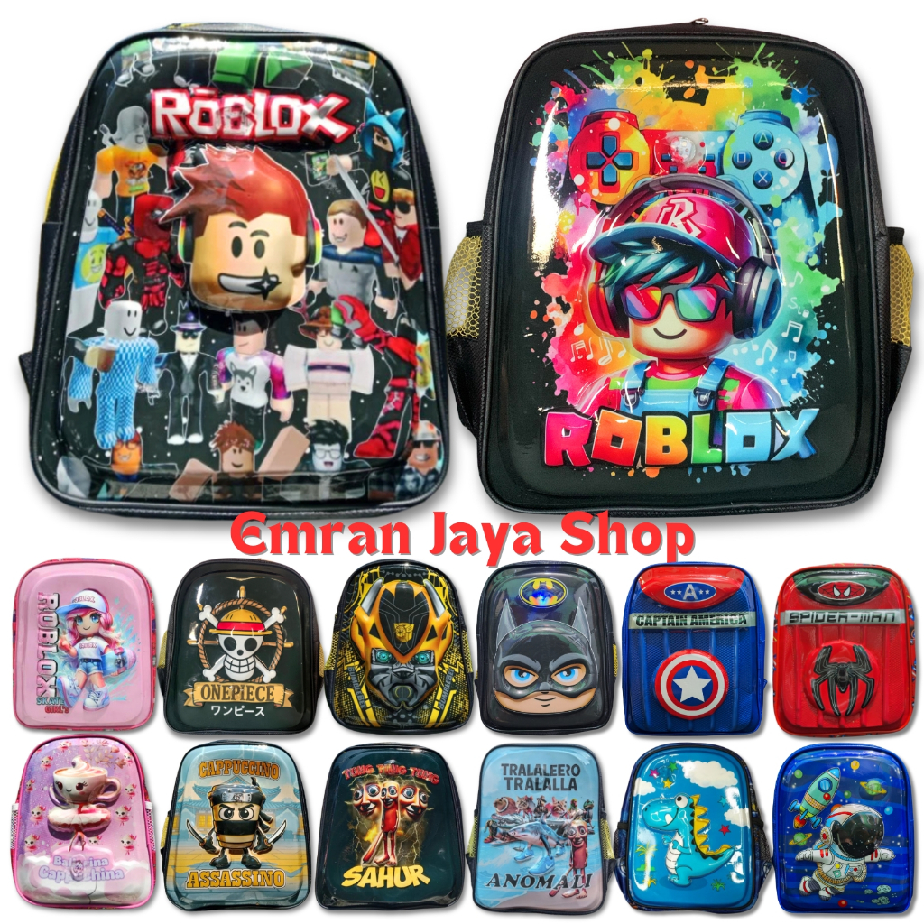 Tas Anak 3D Sekolah PAUD TK SD Timbul LED Roblox Captain America Astronot Thomas Batman Laki-Laki Perempuan Karakter Kar