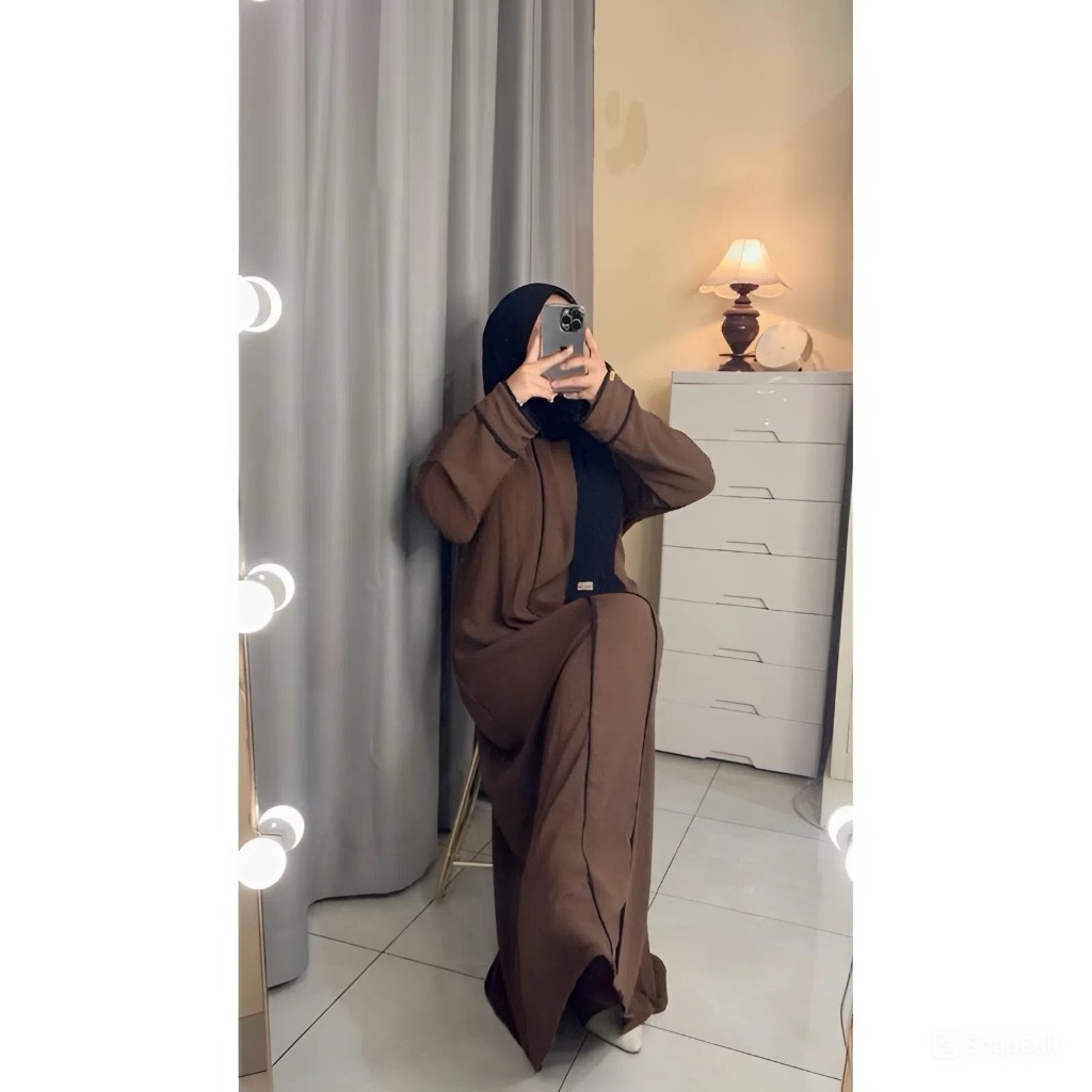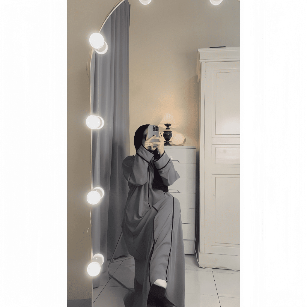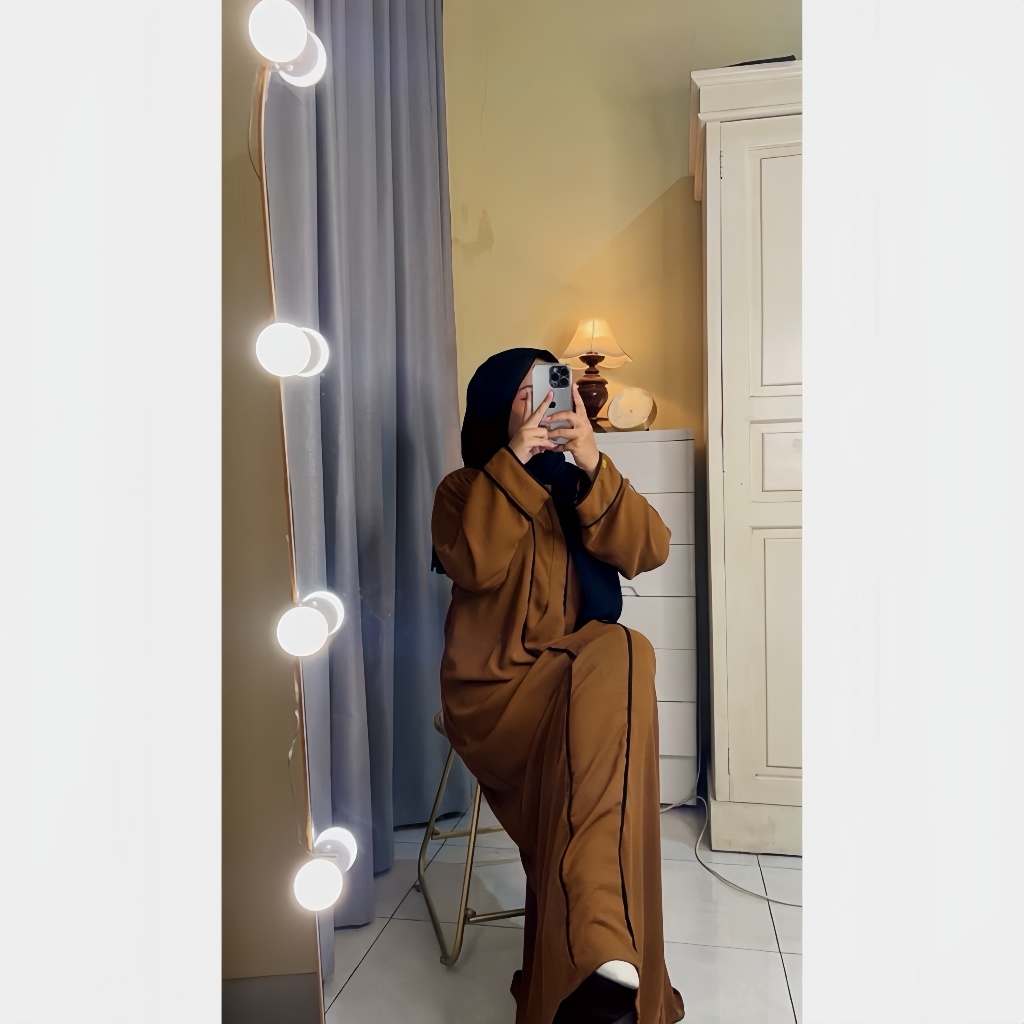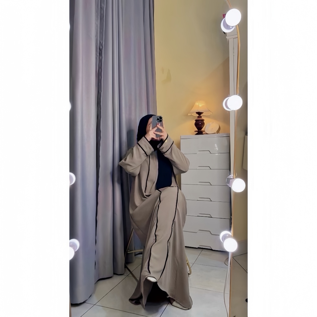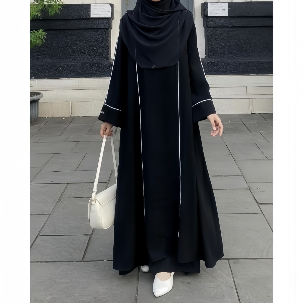 Abaya Hameeda - Abaya Remaja Dewasa - Abaya List Putih - Gamis Wanita Crinkle Airflow