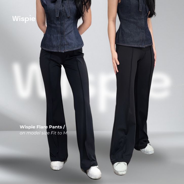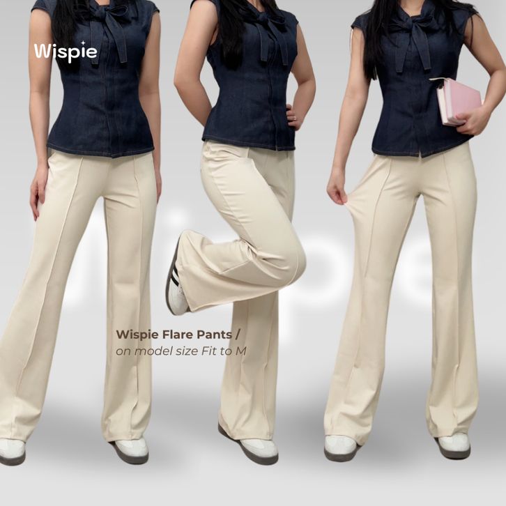 Wispie Flare Pants | Celana Panjang Cutbray Wanita High Waist Kulot Hitam Cream