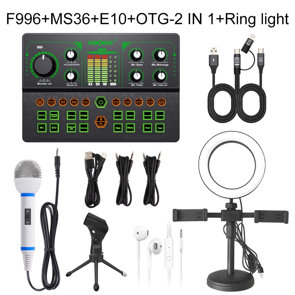 Siborie【】F996+MS33/36/38+E10+OTG2-IN1+Ring Light Paket Lengkap Soundcard Mic Headset Set Pengiriman Cepat Satu Set Duduk