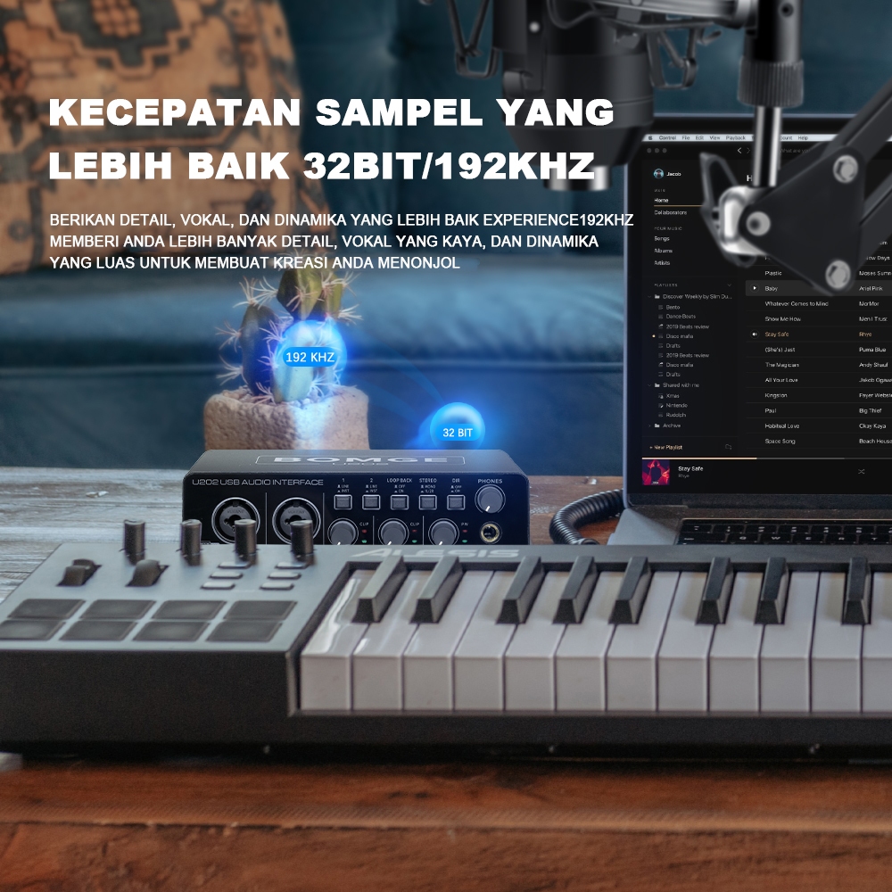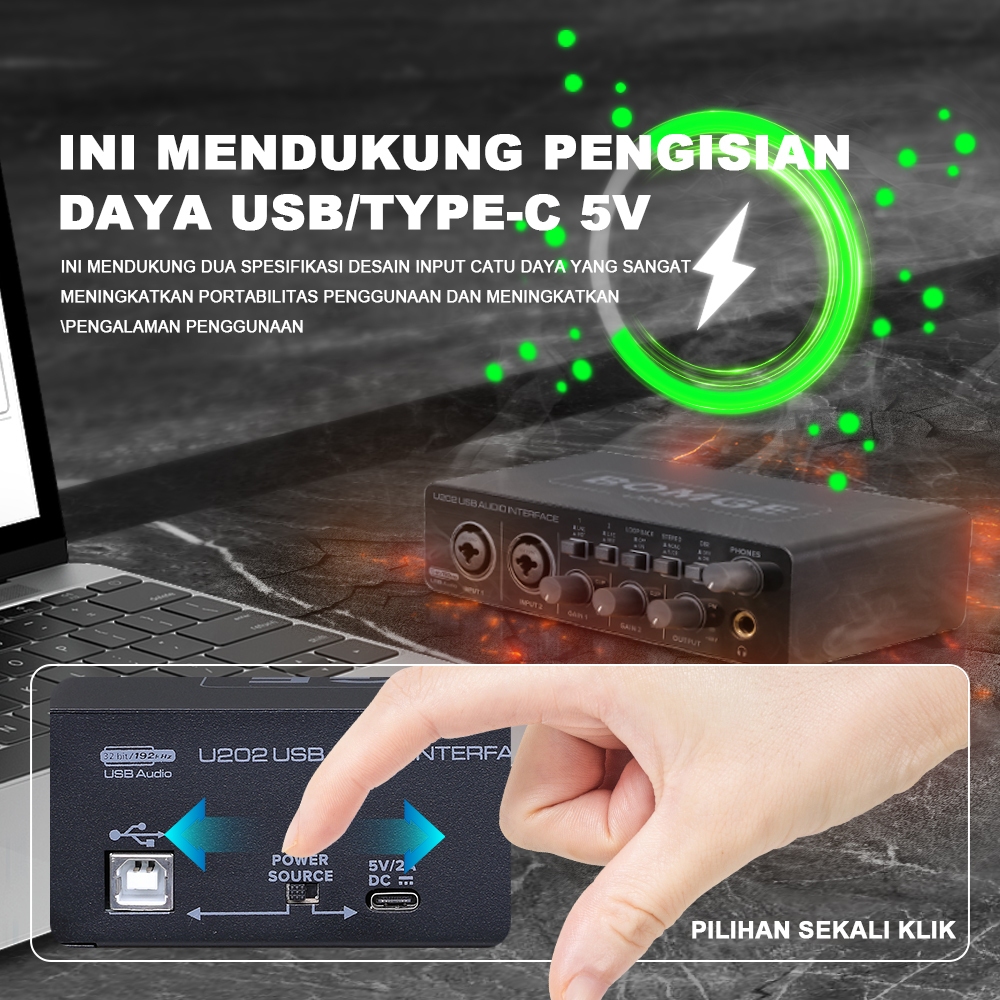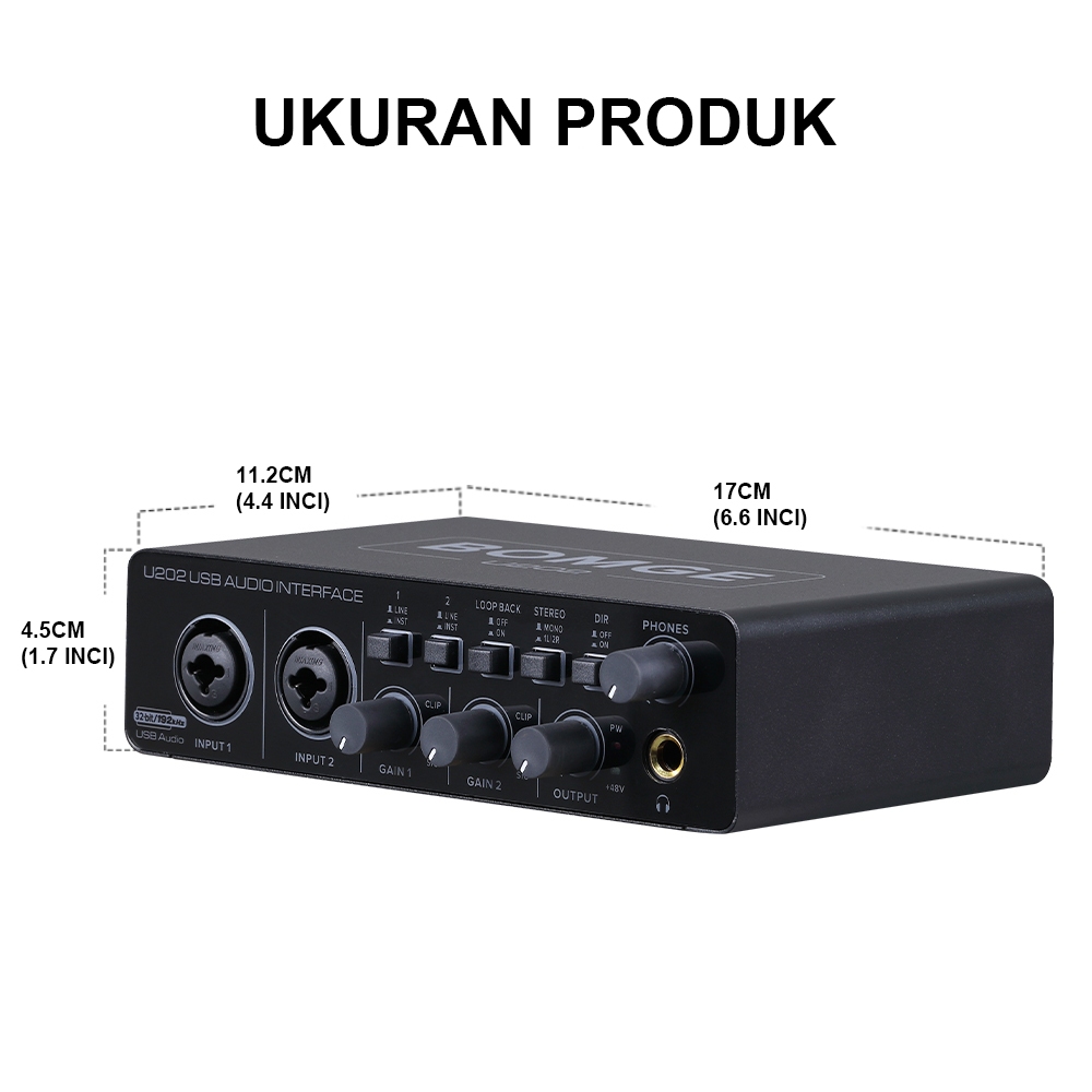 BOMGE U202 USB Audio Interface with Mic Preamplifier XLR/TSR/TS Ports,48V,32-Bit/192kHz Resolution for computer recordin