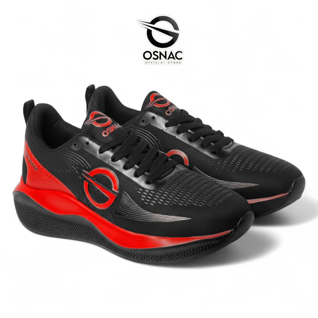 Osnac - Climazenix Hitam Merah Sepatu Olahraga Lari Running Voli Jogging Ringan Pria Wanita