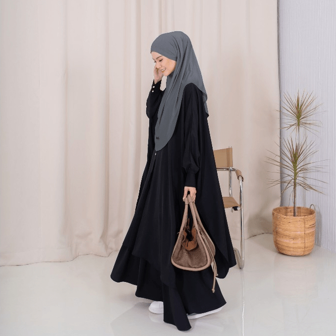 Oneset Abaya Syar'I Matt Tiffany Twill Super Jumbo Ld 215 Setelan Rok Wanita Muslimah Terbaru