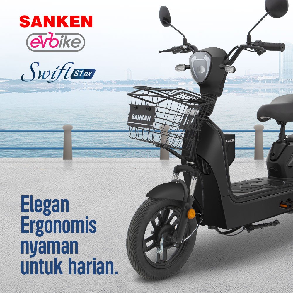 SEPEDA LISTRIK SANKEN EV BIKE SWIFT S1 500 WATT MIDNIGHT BLACK NO BOX SEPEDAH DEWASA ANAK GARANSI RESMI MURAH