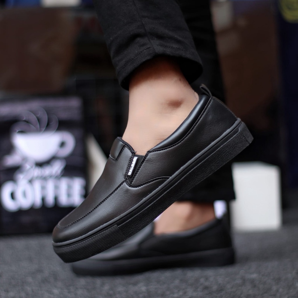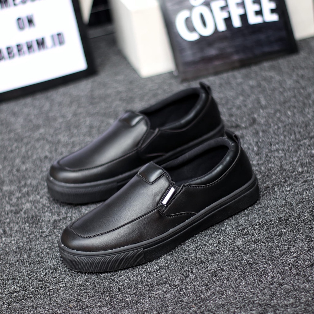 MOLK sepatu formal pria hitam pantofel casual kerja kantor kuliah kulit sintetik