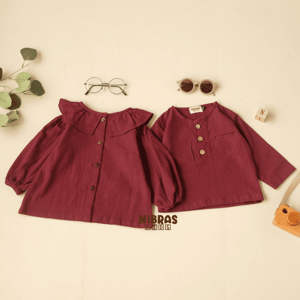 Blouse Anak Perempuan Safira | Baju Kemeja Anak Cewek Lengan Panjang Balon Bahan Linen Crinkle 1-6Th