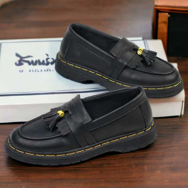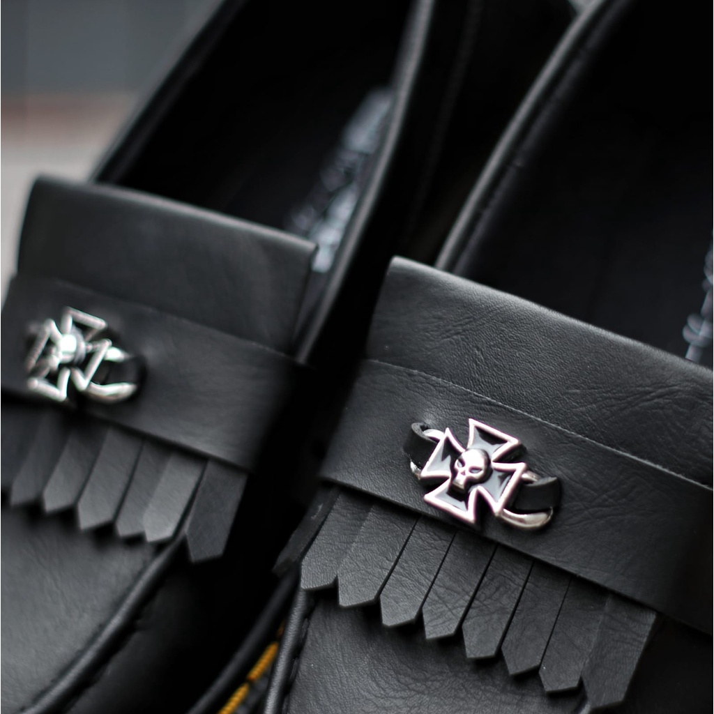Sepatu Loafers Pria Formal Slip On Hitam Dogmart Pantofel Kerja Kulit PU Penny Loafers Sintetic Premium Enoz Sins Skull