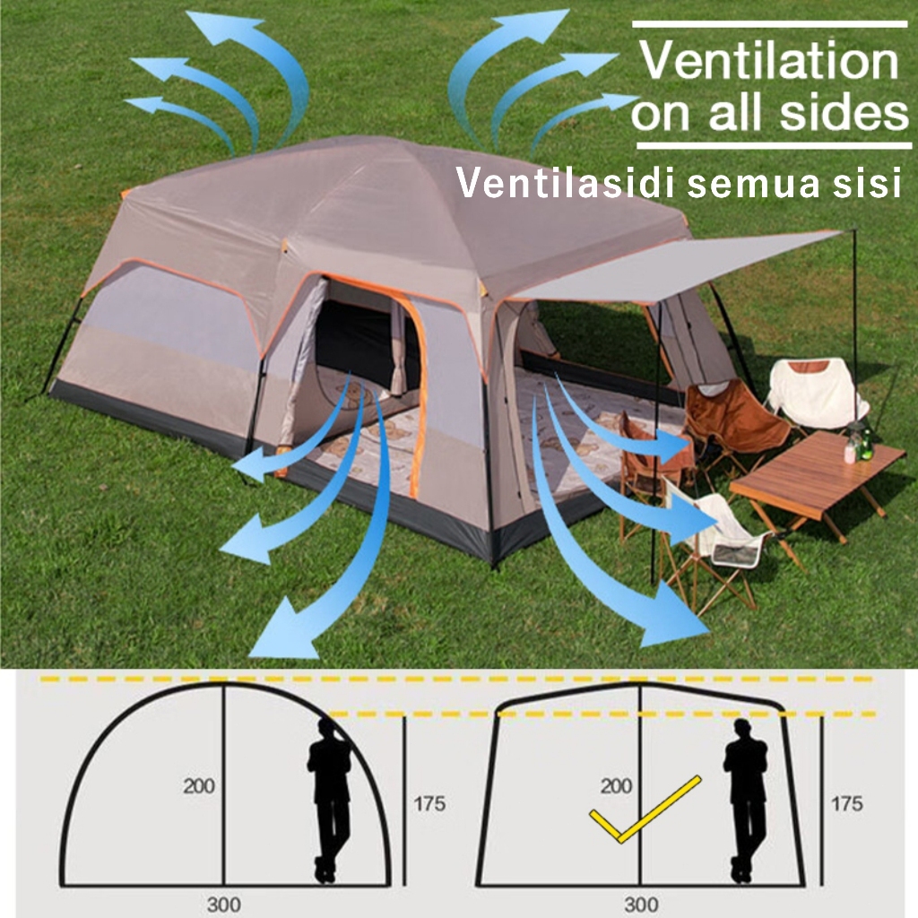 WTHB Outdoor Tenda camping outdoor 8-12 orang Tenda waterproof and windproof Tenda Pertemuan Keluarga Tenda Besar outdoor tenda Portable