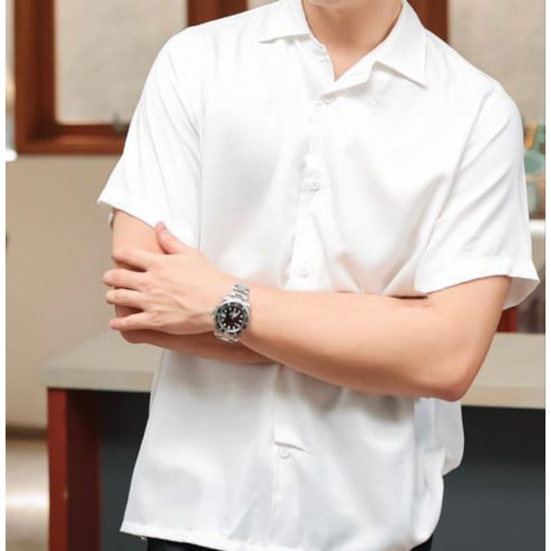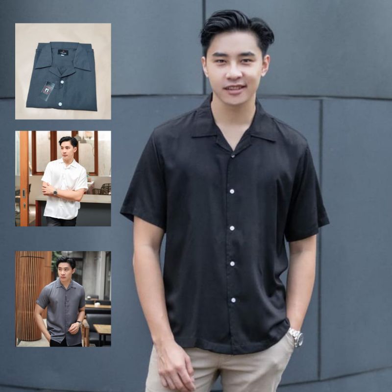 Kemeja Hawaii Polos Pria Lengan Pendek Model Vintage Piyama Korea Style Kain Katun Santai Nyaman