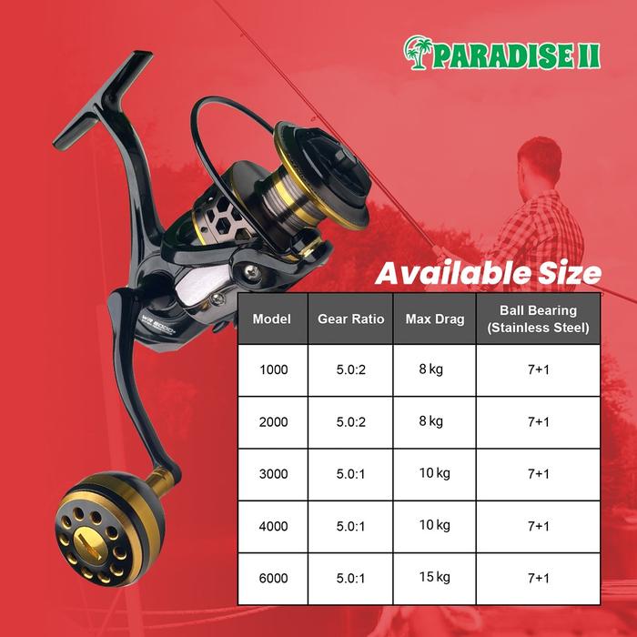 Reel Paradise War | Water Resistant Max Drag 15kg 7+1 Stainless Ball Bearing Ukuran 1000-6000 WR | RWR - 2000+