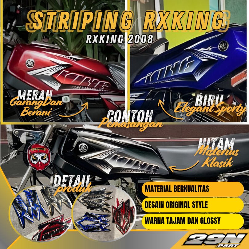 Striping Sticker Stiker Polet Motor Yamaha RX KING RXKING RXK 2008 2009 Hitam Merah Biru Fullset Tangki Dop Aki Samping