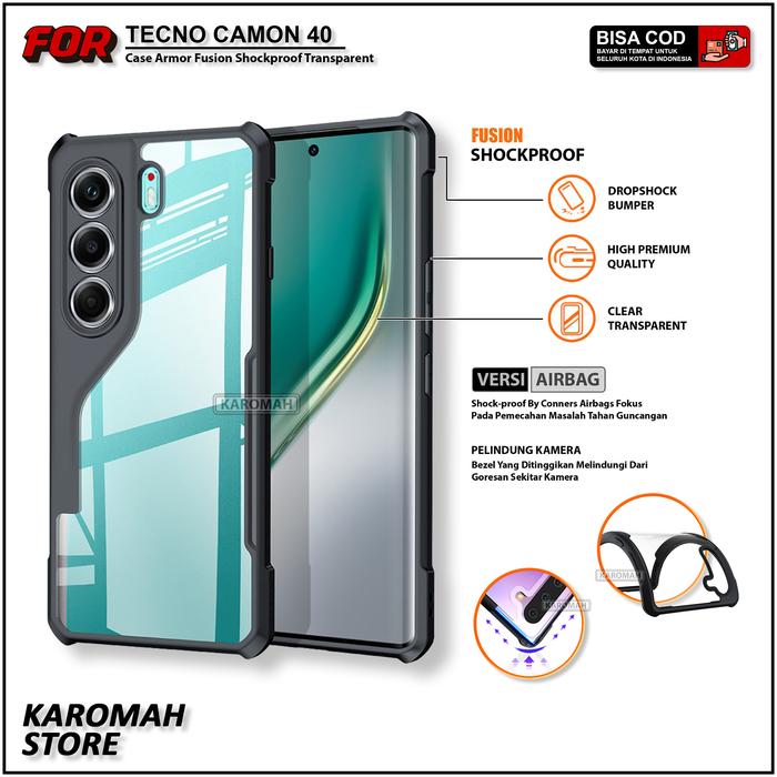 Casing Magnetic For Tecno Camon 40 Fusion Armor Shockproof Transparent Protective Case - Hitam Tecno Camon 40