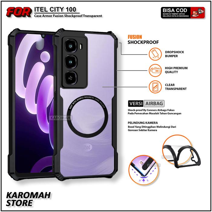 Casing Magnetic For Itel City 100 Fusion Armor Shockproof Transparent Protective Case - Hitam Itel City 100
