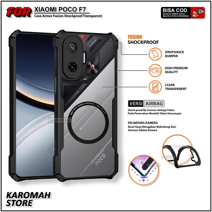 Casing Magnetic For Xiaomi Poco F7 Fusion Armor Shockproof Transparent Protective Case - Hitam Xiaomi Poco F7