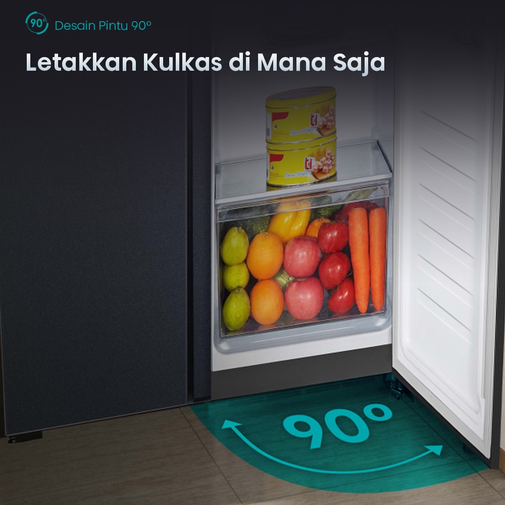 Hisense Kulkas RS599N4ISN Refrigerator Side By Side Kapasitas 468L Warna Abu Inverter Pro Tanpa Bunga Es Multi Air Flow