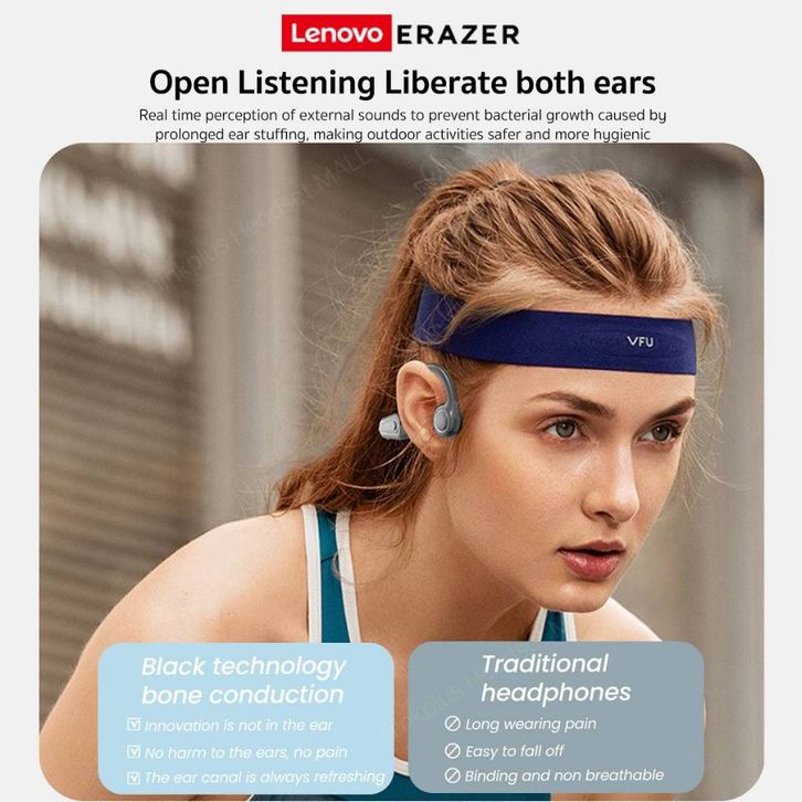 Lenovo ERAZER XF22 Headset Open Ear Bone Conduction Earphone HiFi Stereo Sport Running TWS Bluetooth 5.4 OWS Wireless E
