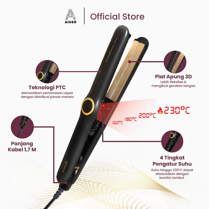 Catokan AIUEO Dhira Alat Catok Rambut 3in1 Teknologi Keramik Tourmalin - Untuk Rambut Susah Blow dan