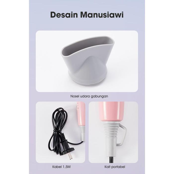 (EKSKLUSIF INDYTIARAS) BUNDLING SAMONO Mini Hair Dryer 400 W Pink + Catokan 2 fungsi pengkriting dan