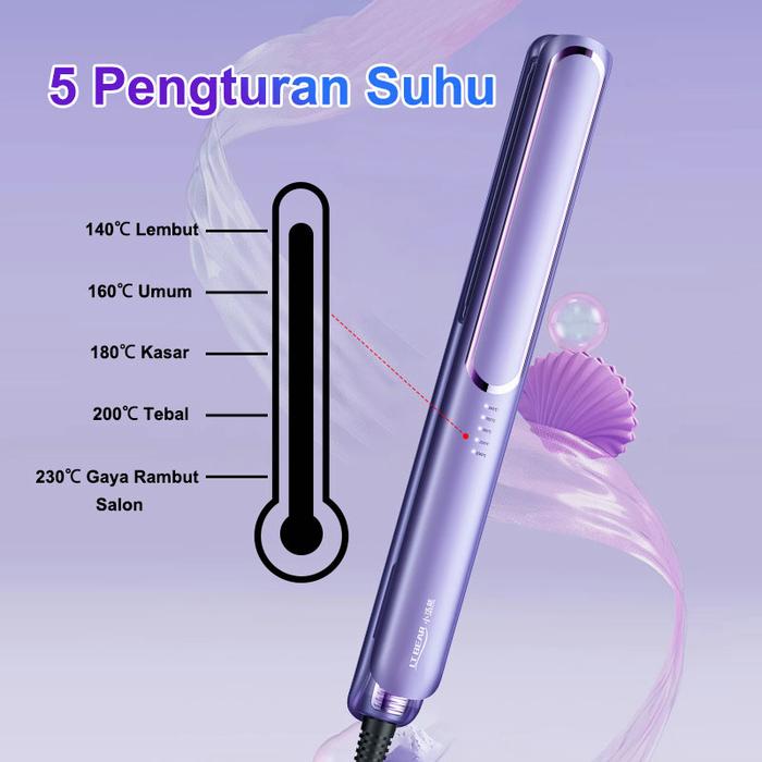 Kucuu Catokan Rambut 2 in 1 Mengeriting/Meluruskan Lapisan Glasir Keramik Pemanasan Cepat Dalam 10