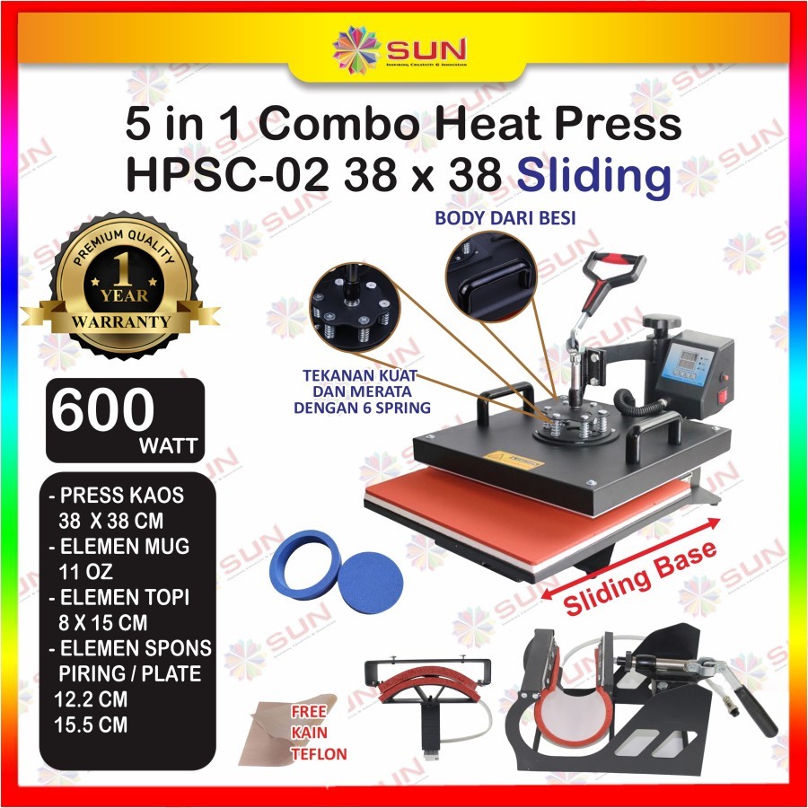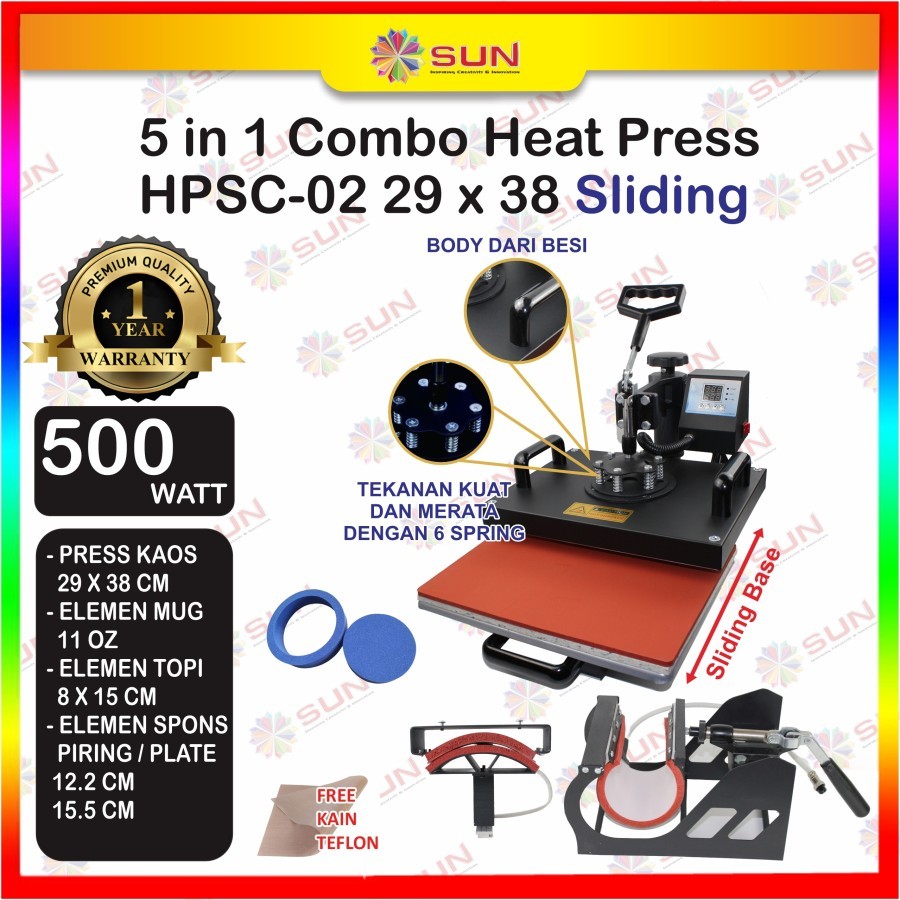Mesin Press Kaos High Pressure 500 watt 23x30/ 29x38 /38 x 38 Swing / Putar / Combo untuk Sablon Kaos, Bag, Puzzle, Pla