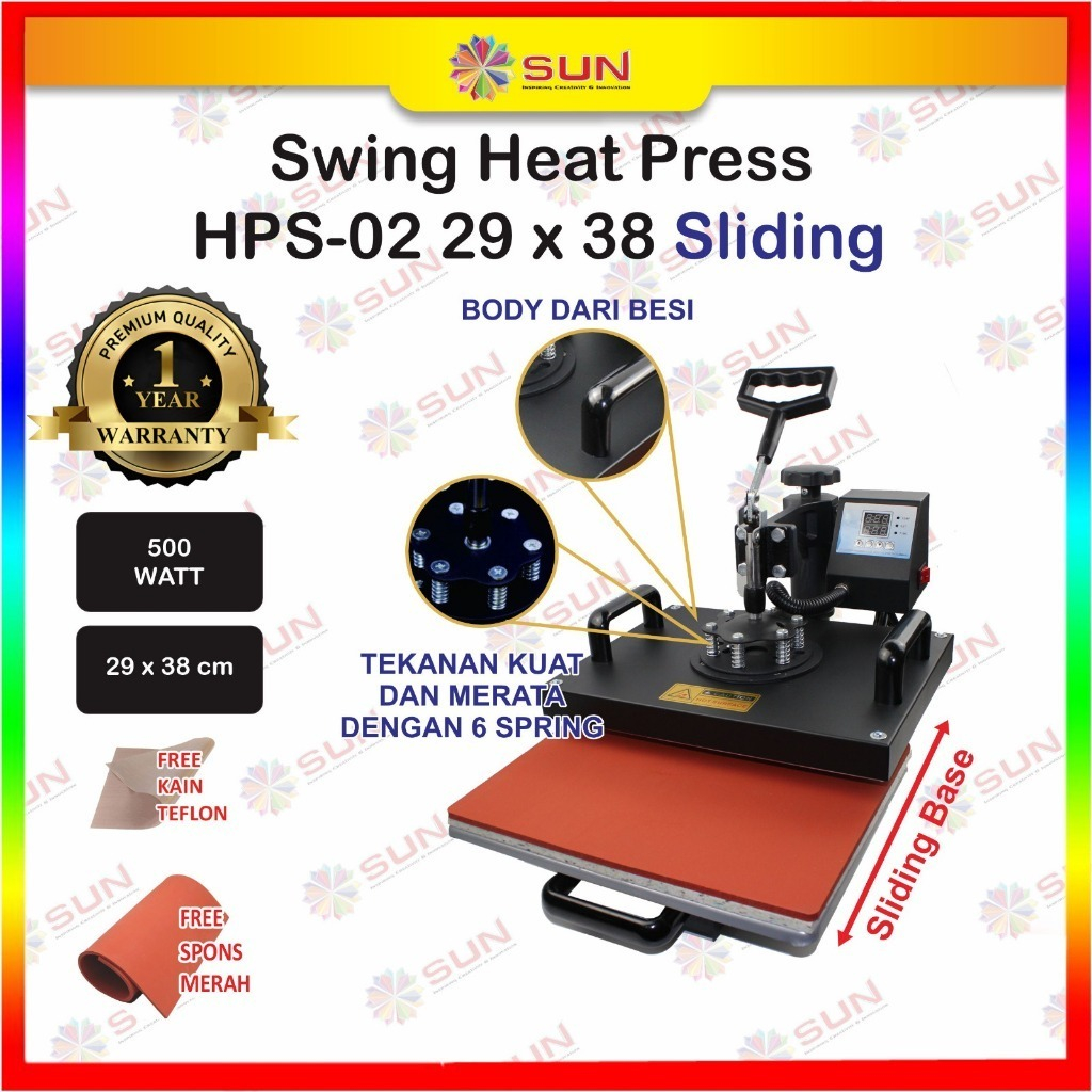 Mesin Press Kaos High Pressure 500 watt 23x30/ 29x38 /38 x 38 Swing / Putar / Combo untuk Sablon Kaos, Bag, Puzzle, Pla