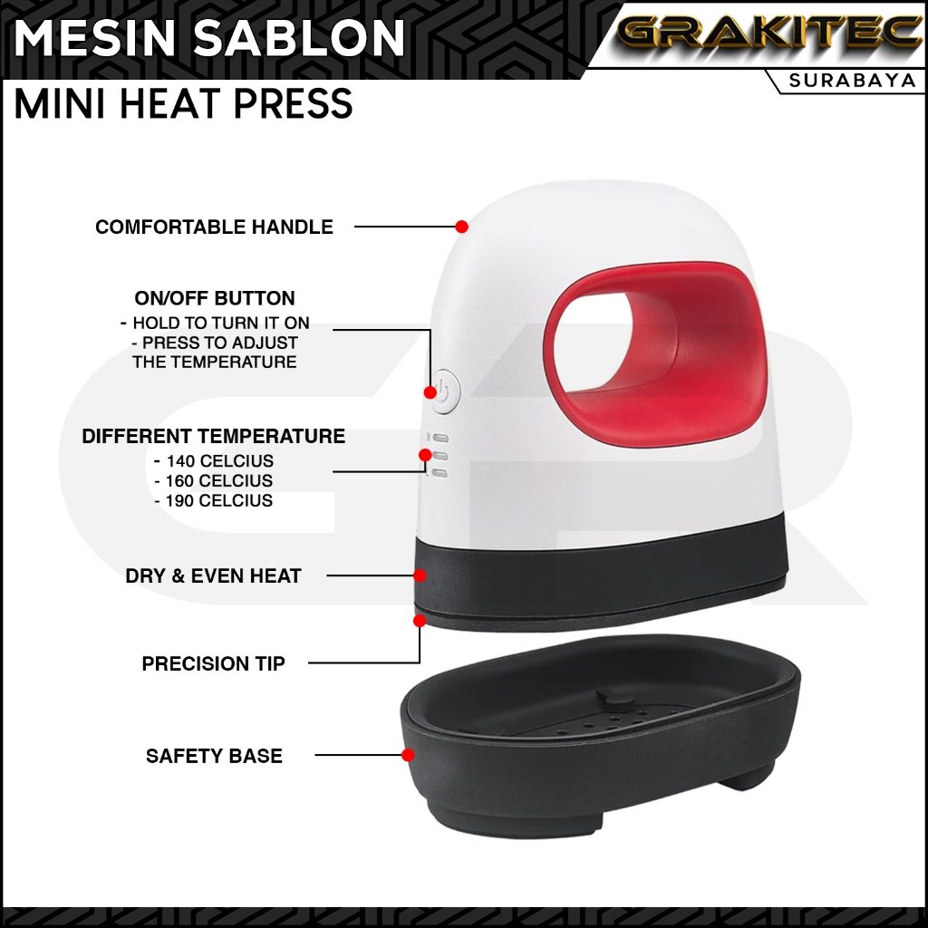 Mesin Heat Press Mini Sablon Tote Bag Kaos, Logo, Topi (Sablon Press Logo, Kaos, Lengan, Saku Baju, Topi, Sepatu, Kerah,