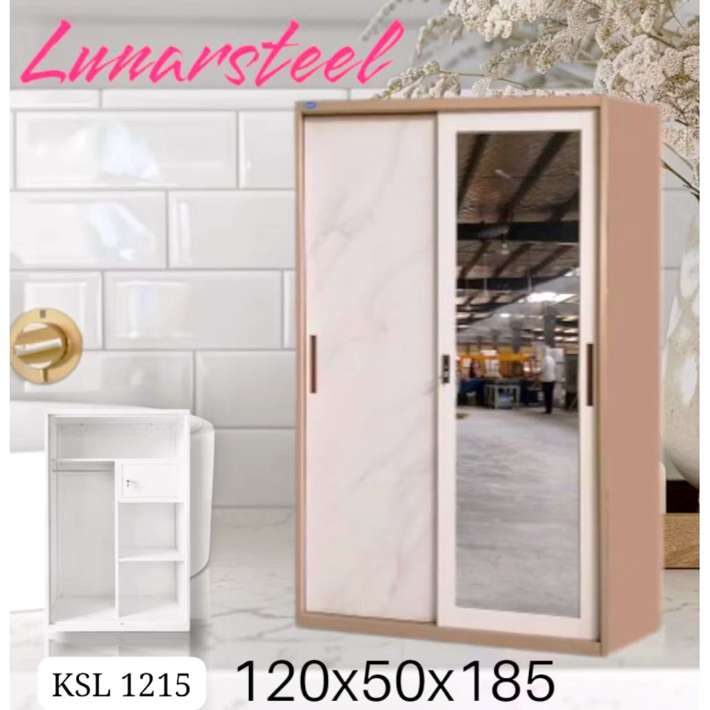 LEMARI PAKAIAN SLIDING 2 PINTU LEMARI BESI SLIDING MINIMALIS LUNARSOL