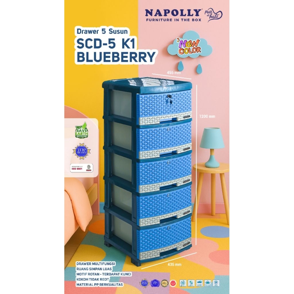 LEMARI PLASTIK NAPOLLY SCD 5 SUSUN 5 LACI DI LENGKAPI RODA DAN KUNCI LACI