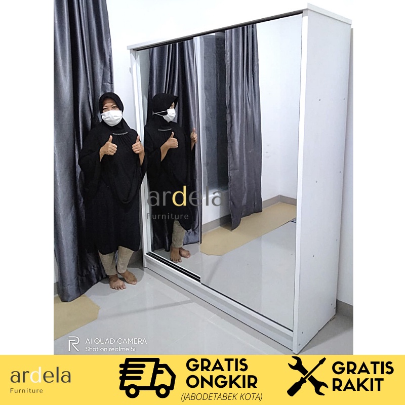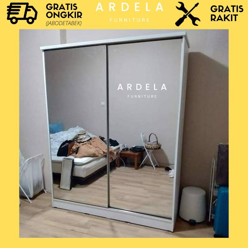 Lemari Pintu Sliding 2 Pintu Cermin Model Mewah Murah Minimalis Full Kaca Bahan Kayu MDF Lemari Pakaian Mewah Pintu Sli