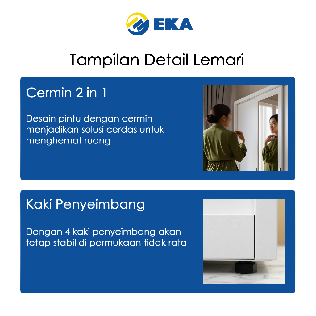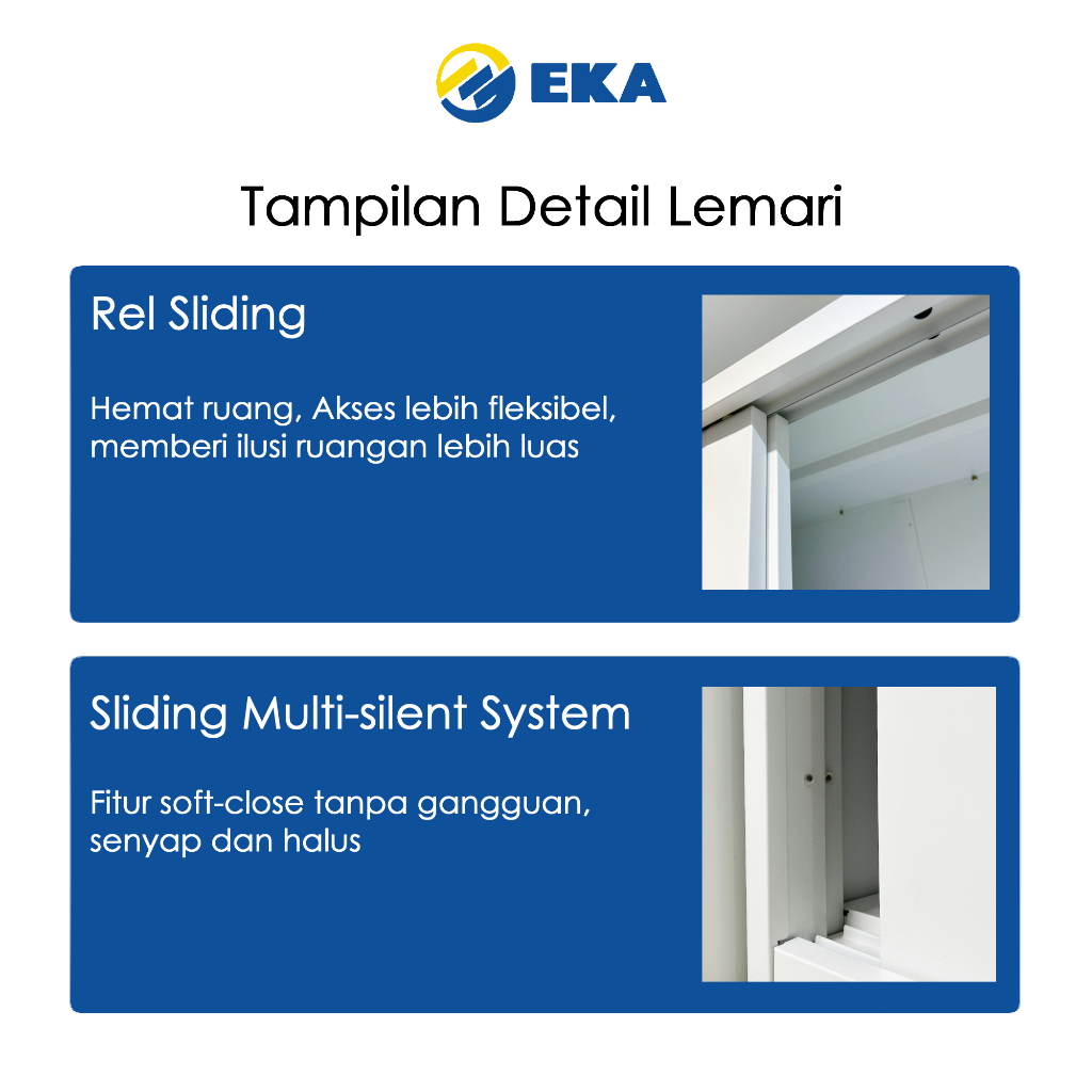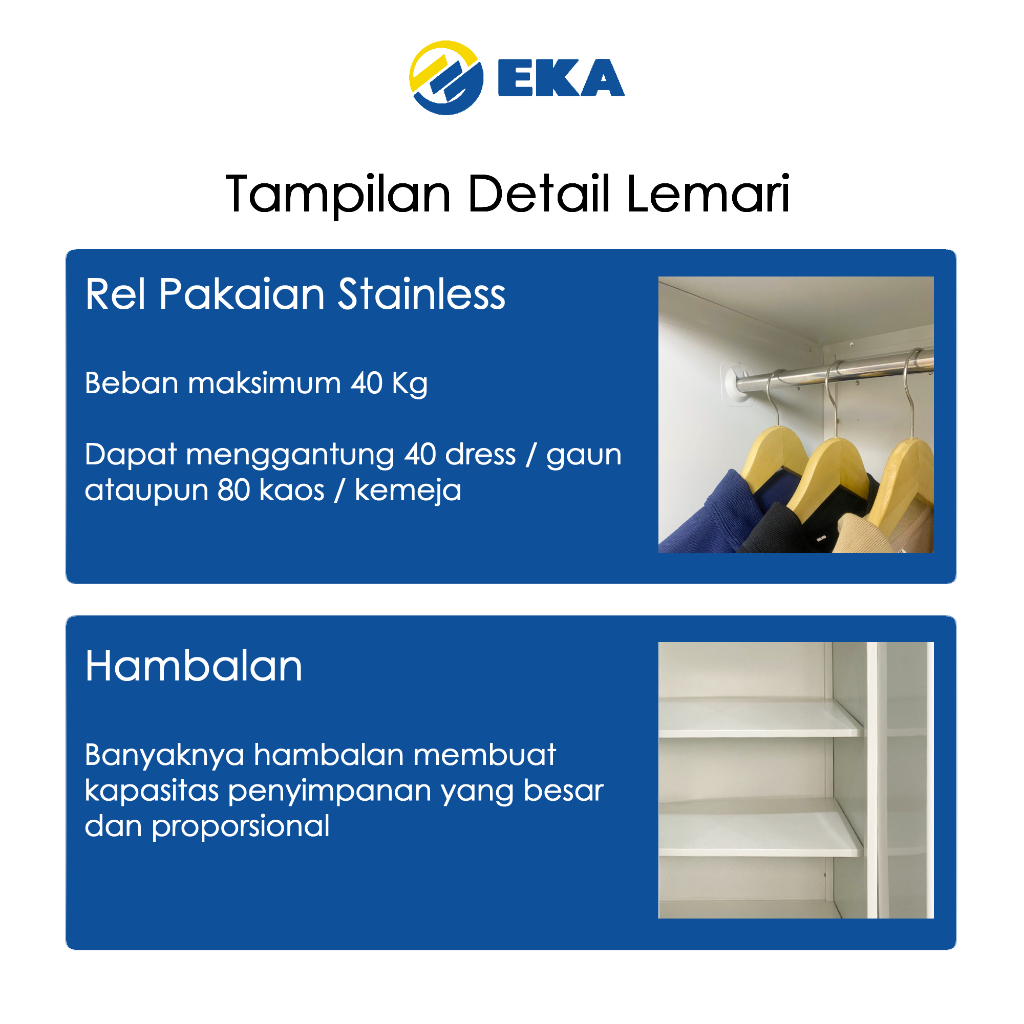 EKA 120cm Lemari Besi Sliding Pakaian 2 Pintu 2 Batang Rak Baju