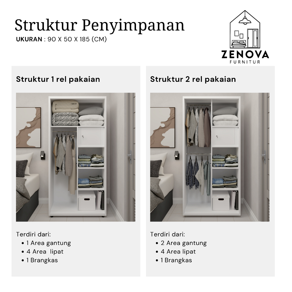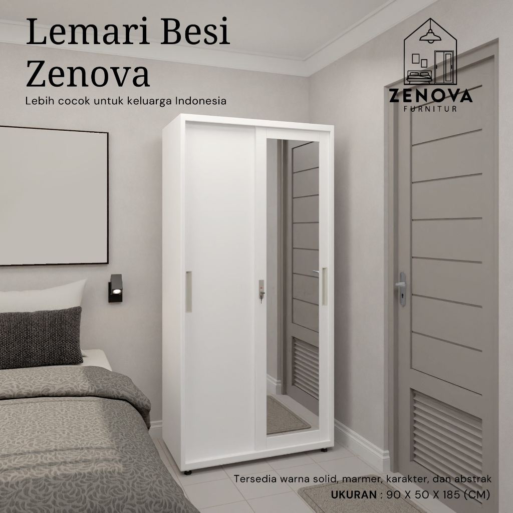 (Promo besar)Zenova Official Lemari Pakaian 2 Pintu Besi Sliding Cermin 2 pintu 90/120cm