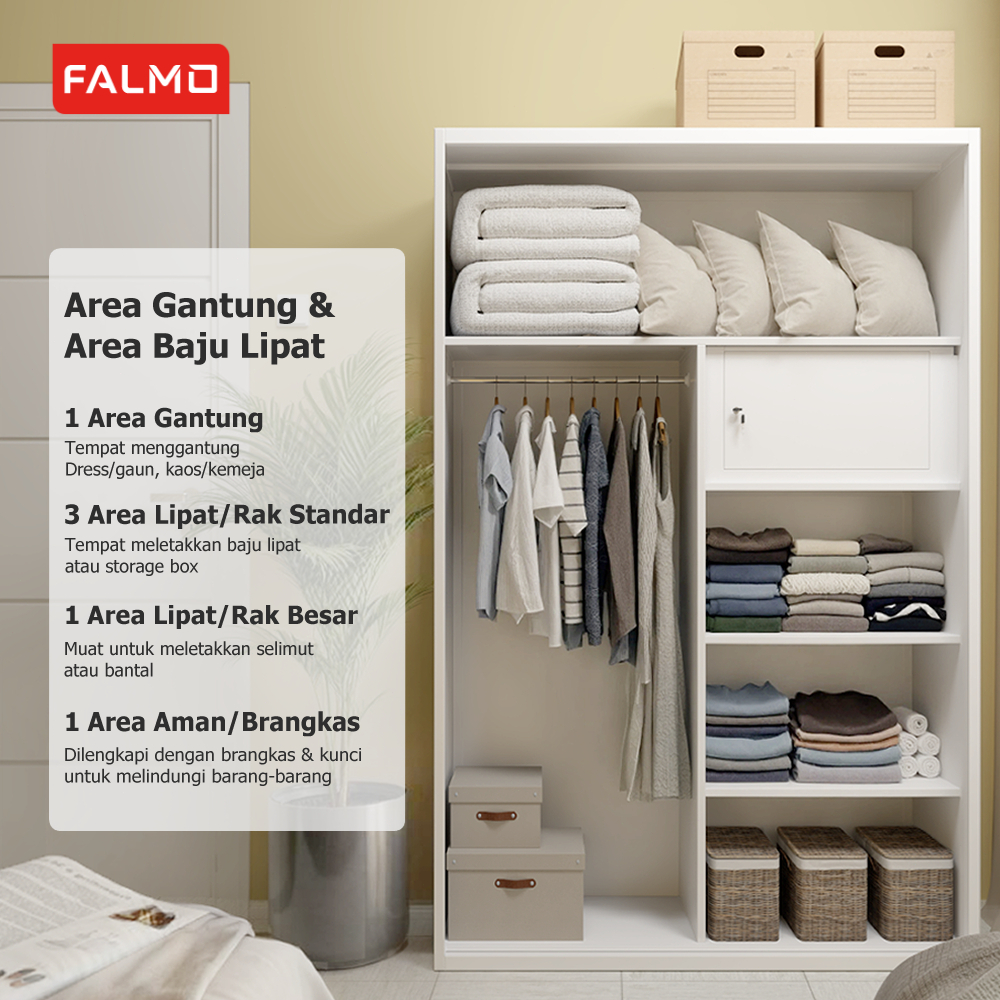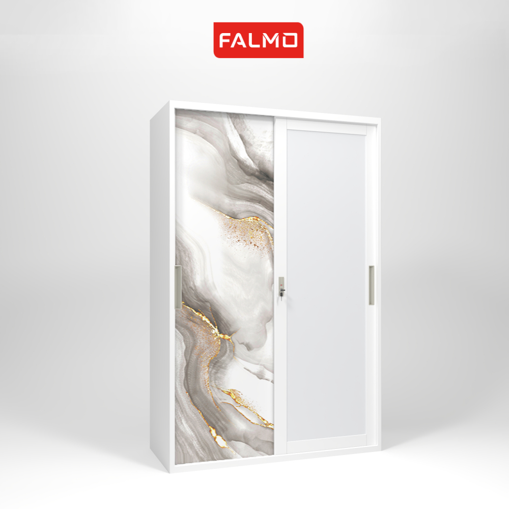 FALMO Lemari Pakaian 2 Pintu/ 120cm 1 gantungan Lemari Kaca Baju Minimalis Pintu Sliding Full Motif