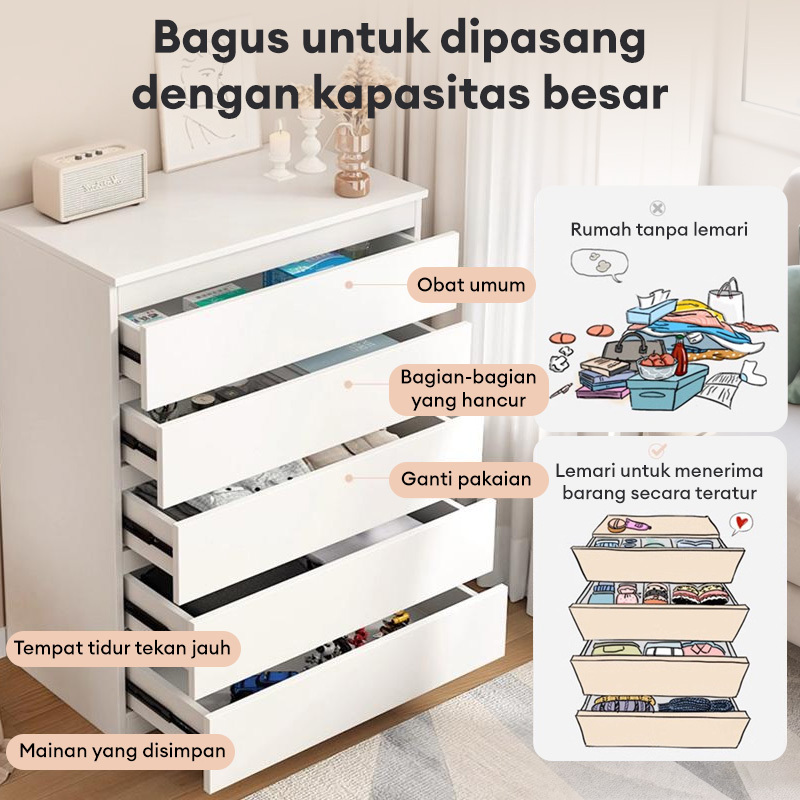 Lemari Laci Kayu Chest Drawer Minimalis Lemari Penyimpanan Lemari Laci 5 Susun Serbaguna Chest Laci